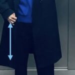 写真のように膝丈コートを着ている時、セーターは「ある程度、丈感ある」が正解です