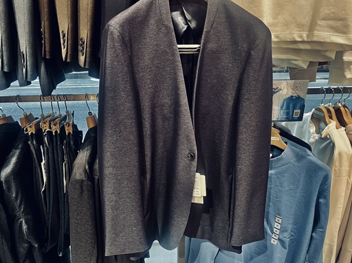 女性のテーラードでは一般的だったカラーレス(襟がない)ジャケットが、これまで以上にメンズで増えています