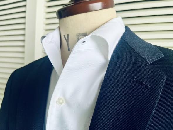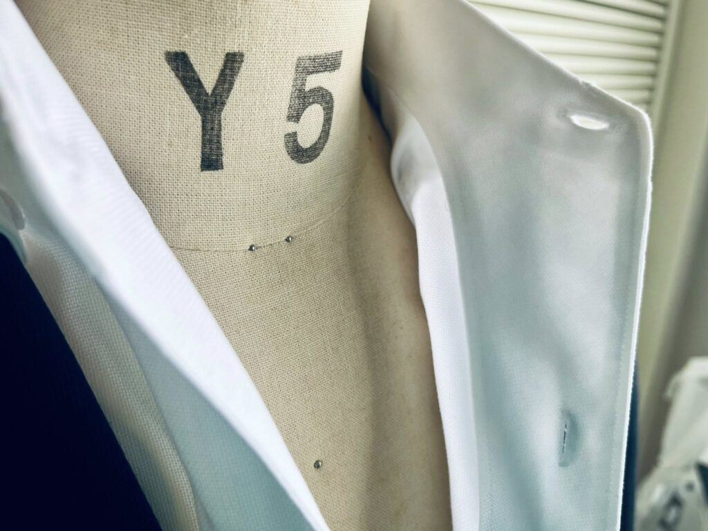 ポイントは、シャツの生地が2重になっているから、襟の自重に潰されることなく、時間が経っても、首元が凛とした印象になるのです